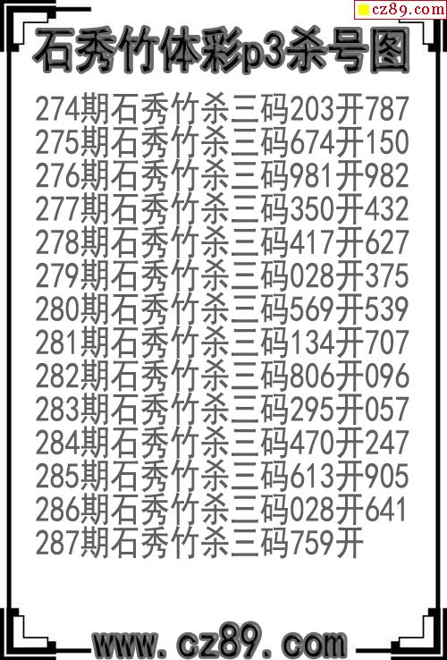 首页 > 排列3图谜 > 25年287期石秀竹体彩p3杀号图