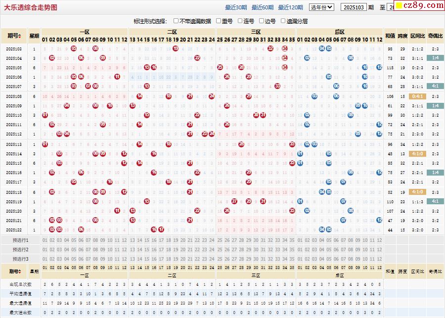 首页 > 大乐透预测 > 25年123期体彩大乐透近期走势图分析
