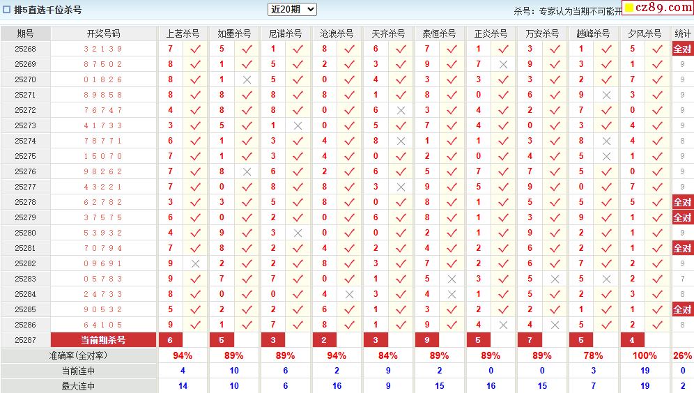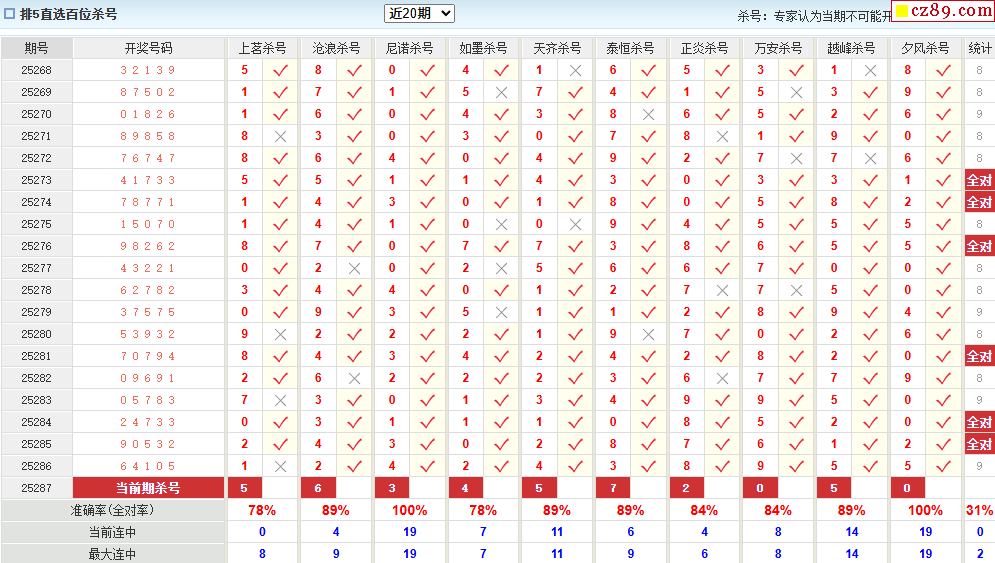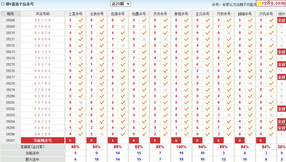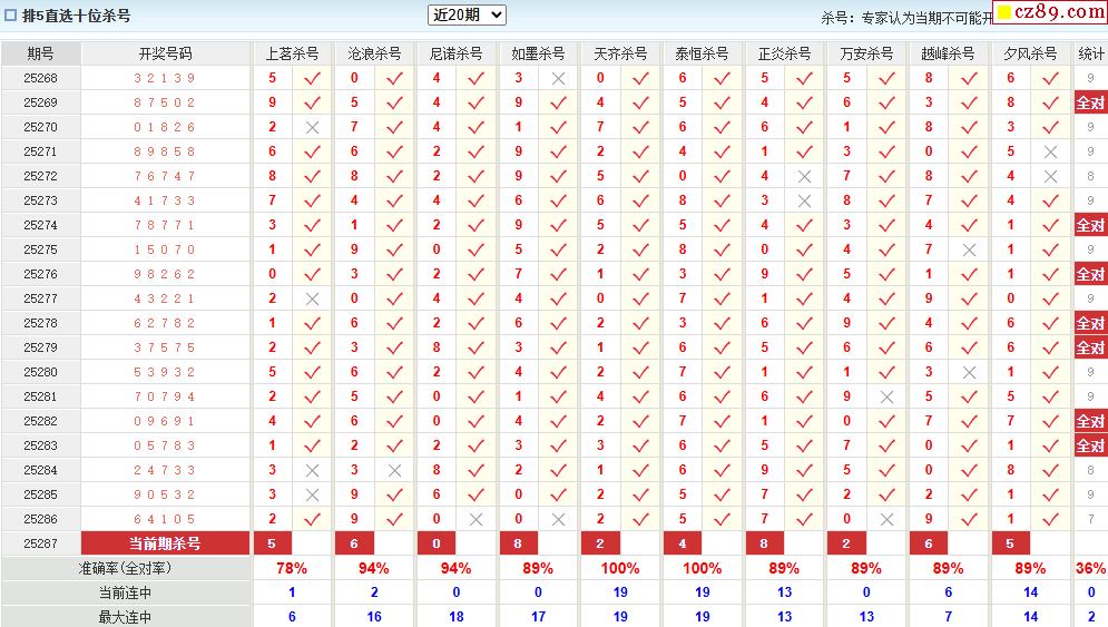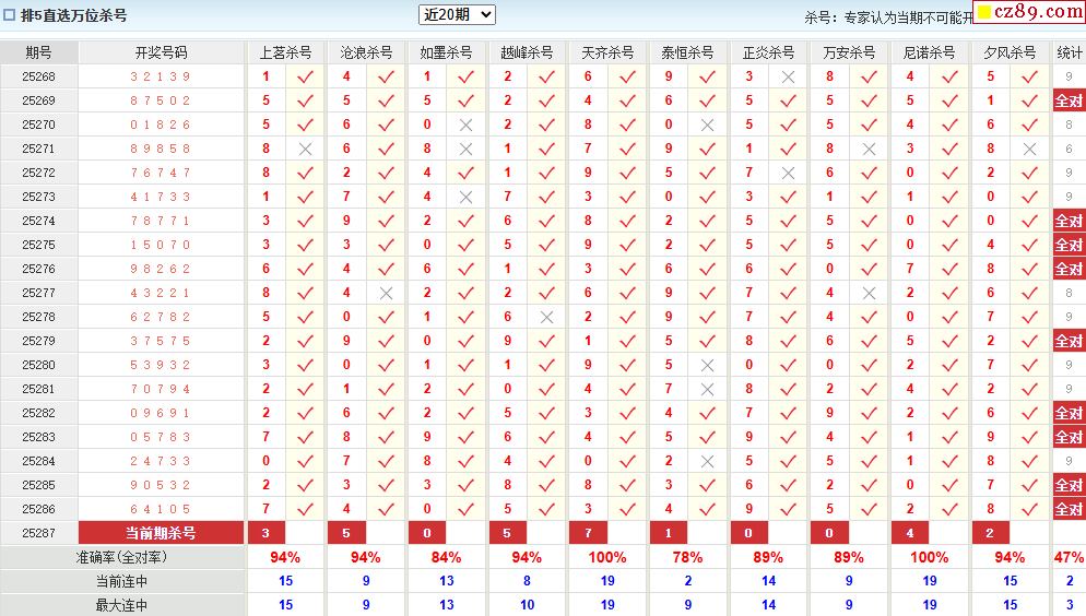 > 25年287期澳客专家体彩P5杀号定码推荐